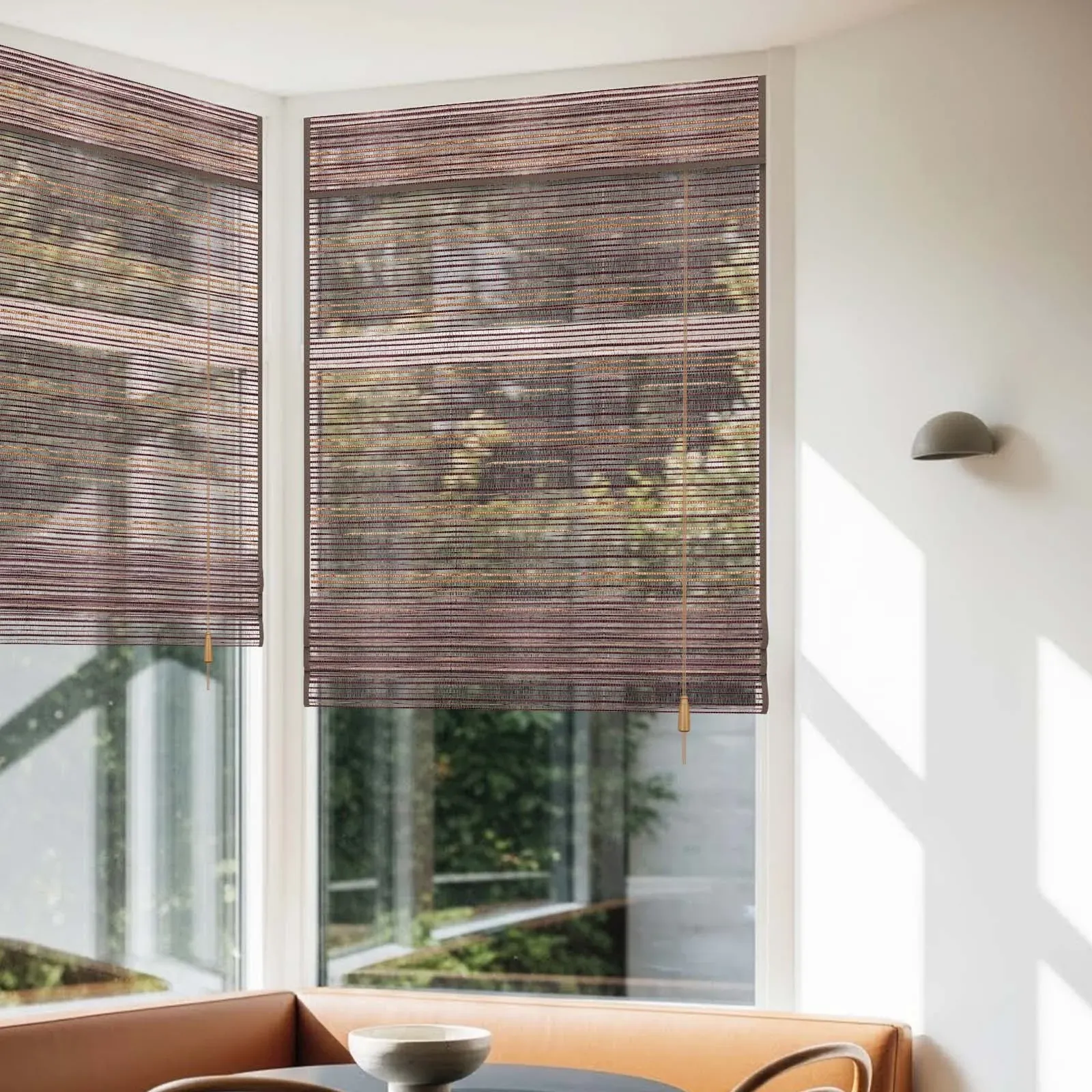Cords can be secured with a cleat for neatness and conveniently coordinate adjacent shades to the same height.