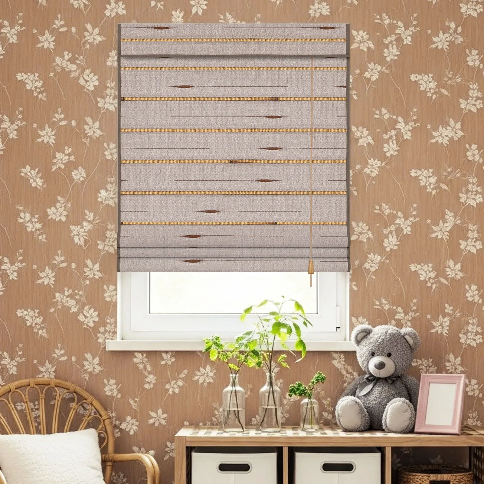 Corded Natural Woven Shade, Lagurus Ovatus