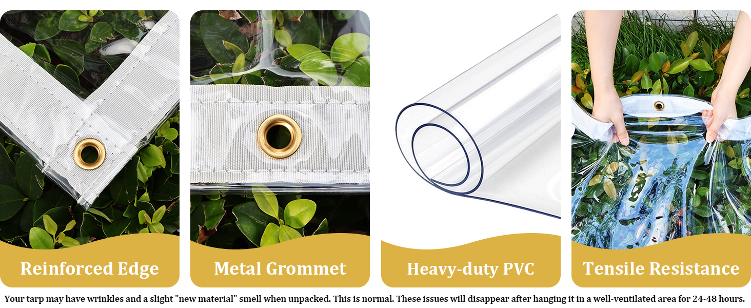 - Durable PVC Material: Made from heavy-duty transparent PVC material, this garden net combines high light permeability with reliable waterproof and windproof performance. Its double-stitched reinforced edges resist tearing, while anti-rust brass grommets provide lasting strength in diverse weather conditions.