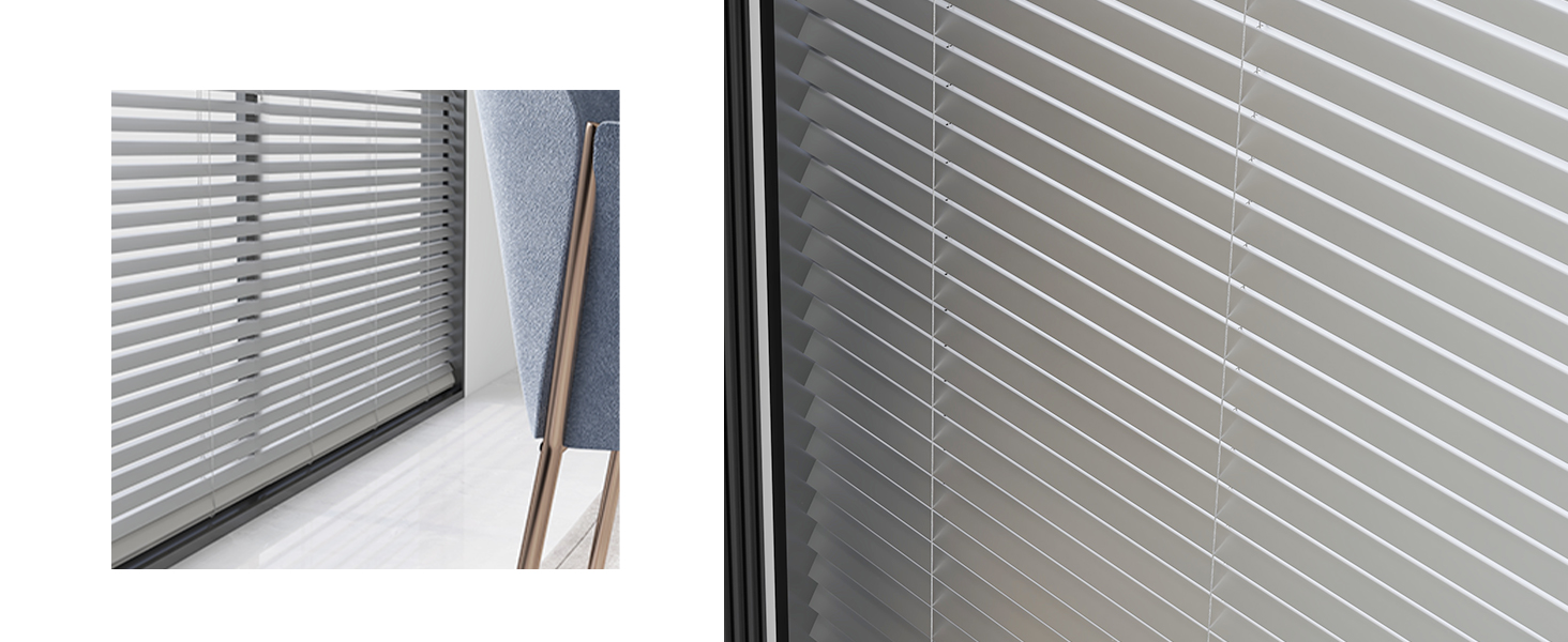 Achieve elegant light diffusion with our L-Shape Frosted Aluminum Blinds. Featuring crisp L-shaped slats with a decorative frosted ice pattern, they create soft, sparkling light effects while ensuring privacy. Made from rust-proof aluminum, the finish helps with heat management. Available in custom sizes for a tailored inside or outside mount to elevate any window.