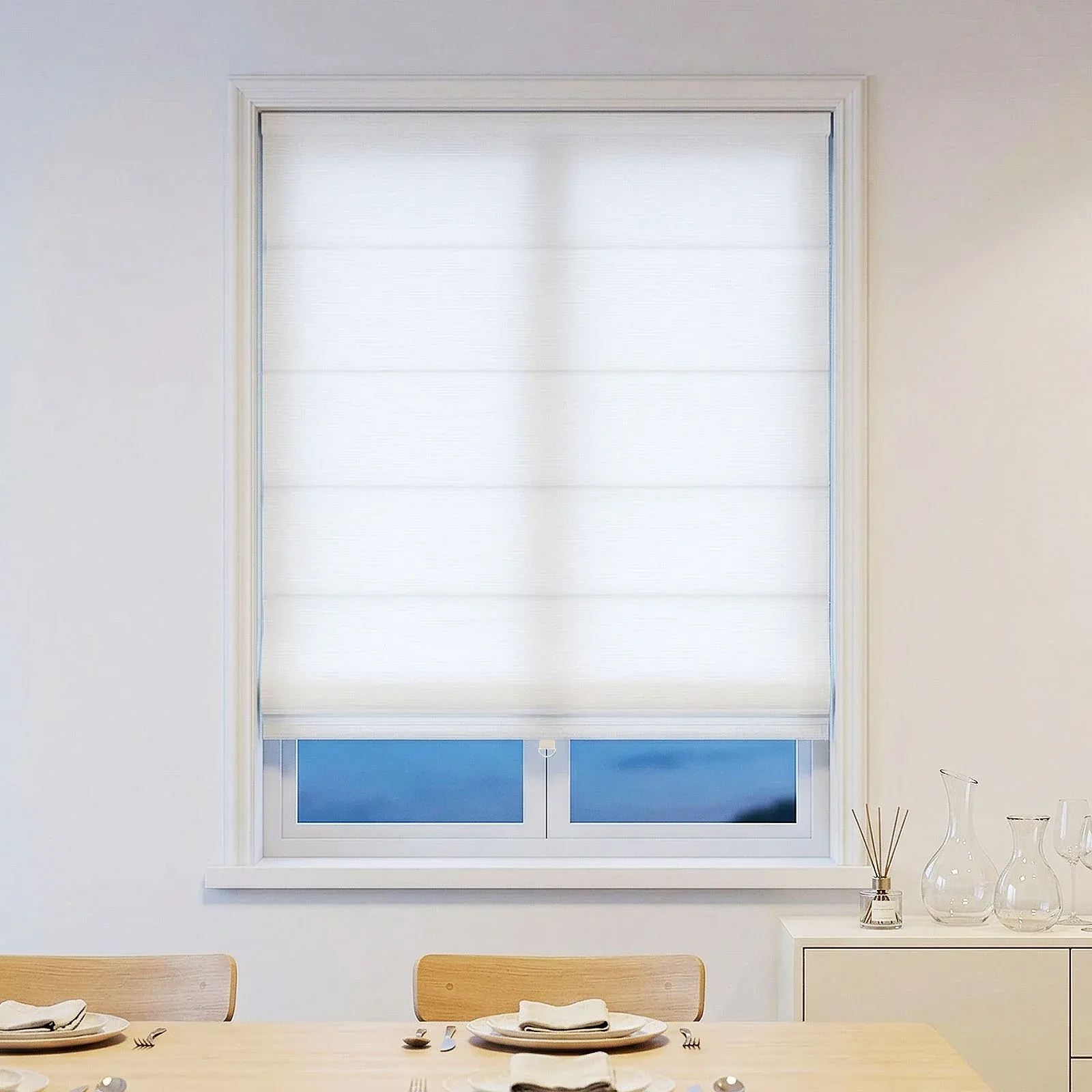[Soft Light Filtering] These light filtering roman shades gently diffuse harsh sunlight and filter 40% of brightness, keeping rooms bright and comfortable while blocking harmful UV rays. They offer ideal privacy and a cozy atmosphere—perfect for living rooms, offices, kitchens and dining areas.