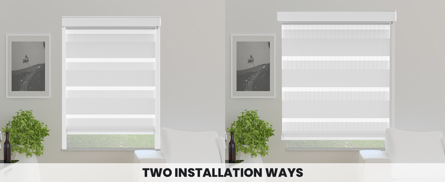 This shade features a clean, minimalist alternating stripe design housed within an elegant fabric-wrapped arch valance. Its daylight filtering fabric softly diffuses natural light to create a bright, airy feel, perfectly balancing privacy and brightness. The reliable corded operation system allows for precise light adjustment, while the professionally installed arch valance offers a seamless, custom-built appearance. Available in classic White and Gray for a sharp, contemporary look. - High-Precision Custom Sizing: Elevate your home with our custom-cut zebra blinds, available in a wide range of widths from 16" to 90" and heights up to 118". With precise 1/8-inch increments, we ensure a flawless "tailored fit" for any window. Perfectly adaptable for both Inside Mount (requires 10cm depth) and Outside Mount, providing the ultimate custom window treatment experience.