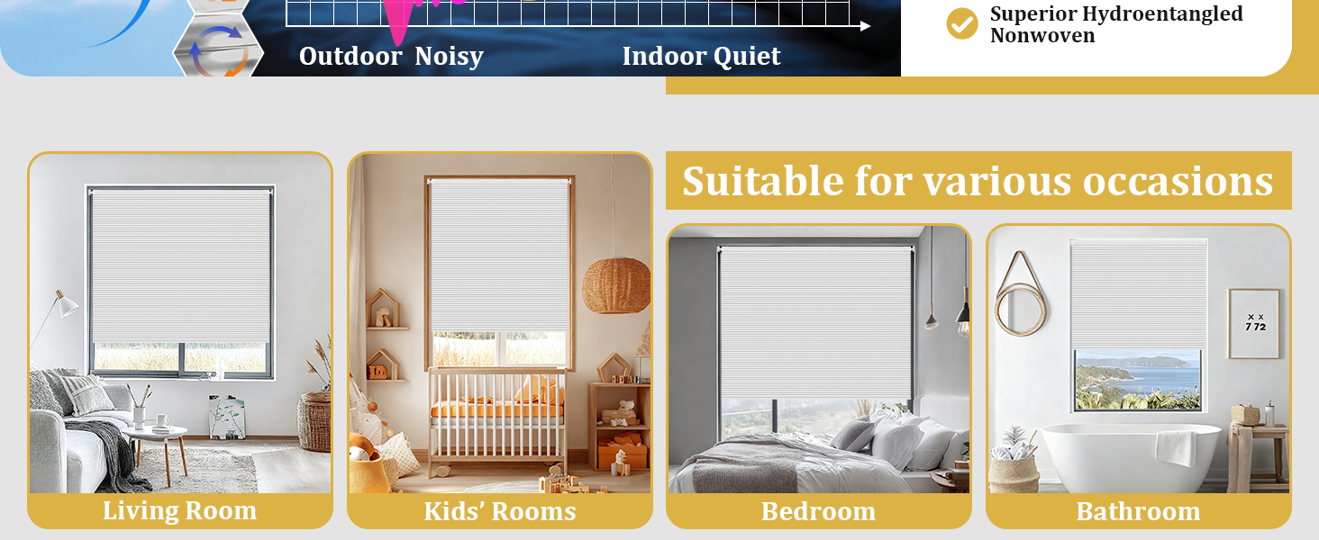 Crafted from premium hydro-entangled non-woven fabric, the shades are durable, anti-tear, and completely non-toxic. This eco-friendly and skin-safe material ensures a healthy indoor environment for your loved ones.
