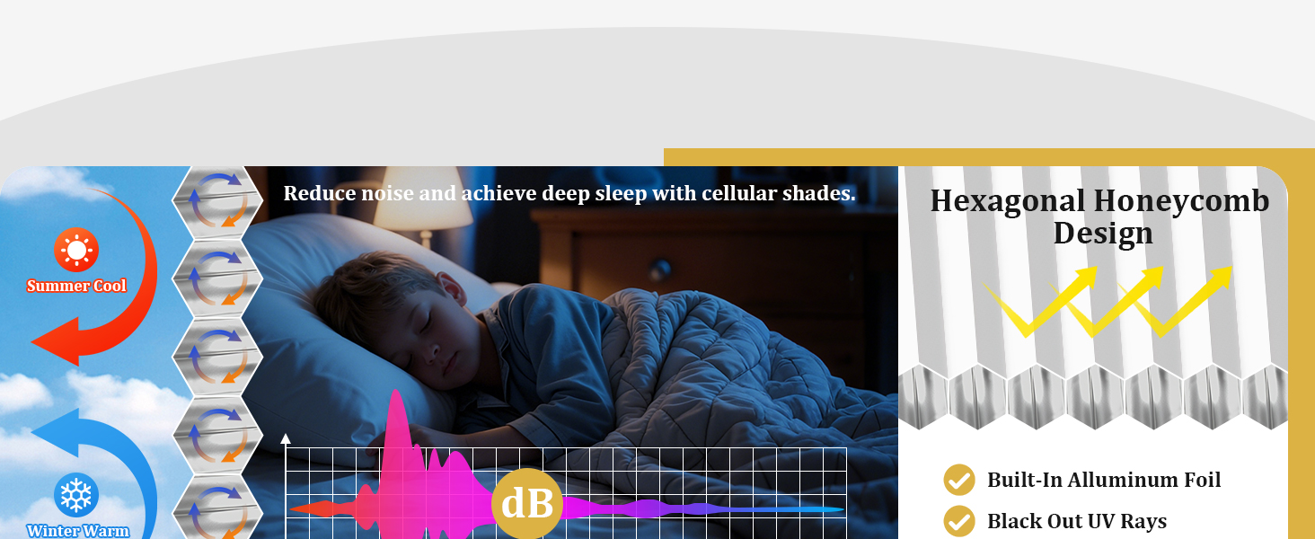 The hexagonal honeycomb structure traps air, providing exceptional thermal insulation and noise reduction. A built-in aluminum film layer effectively blocks harmful UV rays, helping to stabilize room temperature and reduce energy costs year-round.