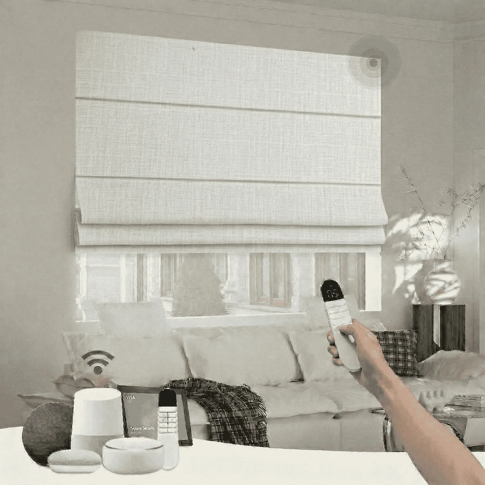 No-Drill Motorized Roman Shade Cordless C147