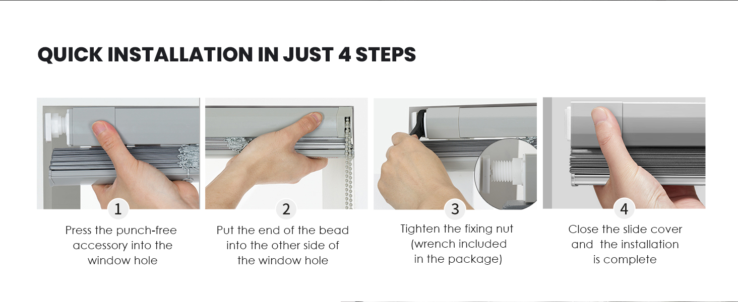Get a secure fit instantly with our rental-friendly mounting system. Perfect for apartments, it installs and removes without damaging your window frames. - C-Shaped Perforated Slats for Maximum Airflow & Light Filtering