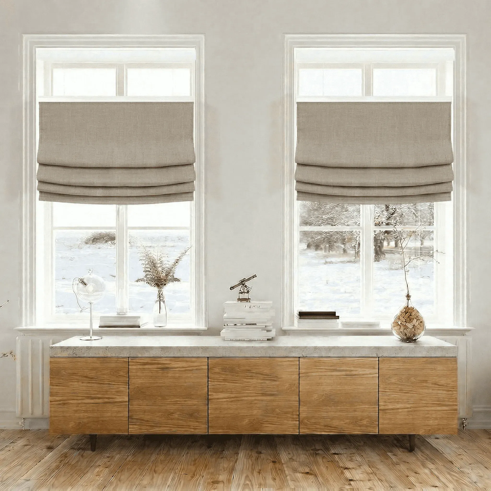 [Energy Efficient Design]This linen roman shade blocks UV rays to prevent furniture fading and provides effective thermal insulation, helping keep indoor temperature stable and reduce energy consumption throughout the year.