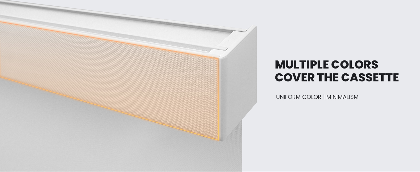 This model features a contemporary fabric-covered square shell that provides a sleek, architectural look while ensuring the valance matches the blind. The system utilizes a reliable beaded chain for steady manual operation, allowing the fabric to be positioned at any preferred height for customized light control. The combination of the sharp-lined square housing and the premium fabric texture creates a sophisticated, modern aesthetic suitable for various interior styles.